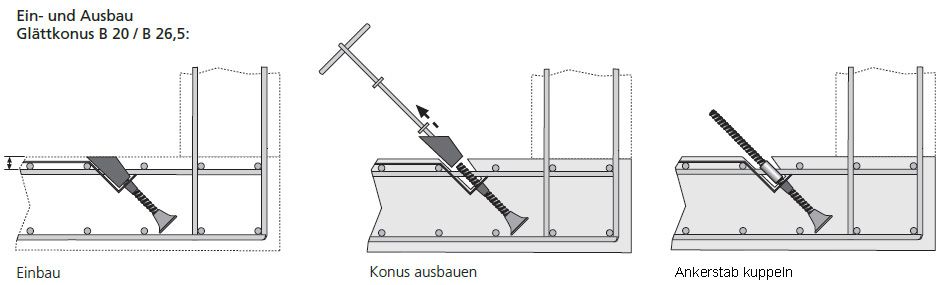 Glättkonus innerhalb von 24 Stünden nach dem Betonieren entfernen, um ein einfaches Ausschalen zu gewährleisten